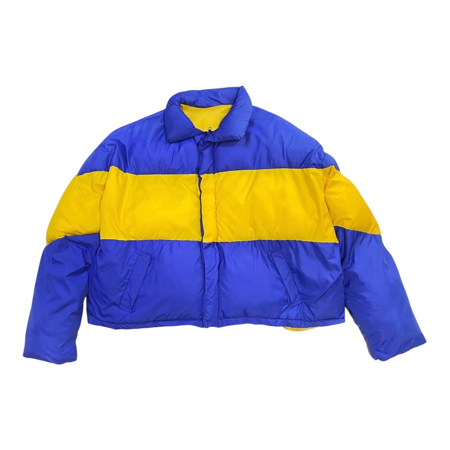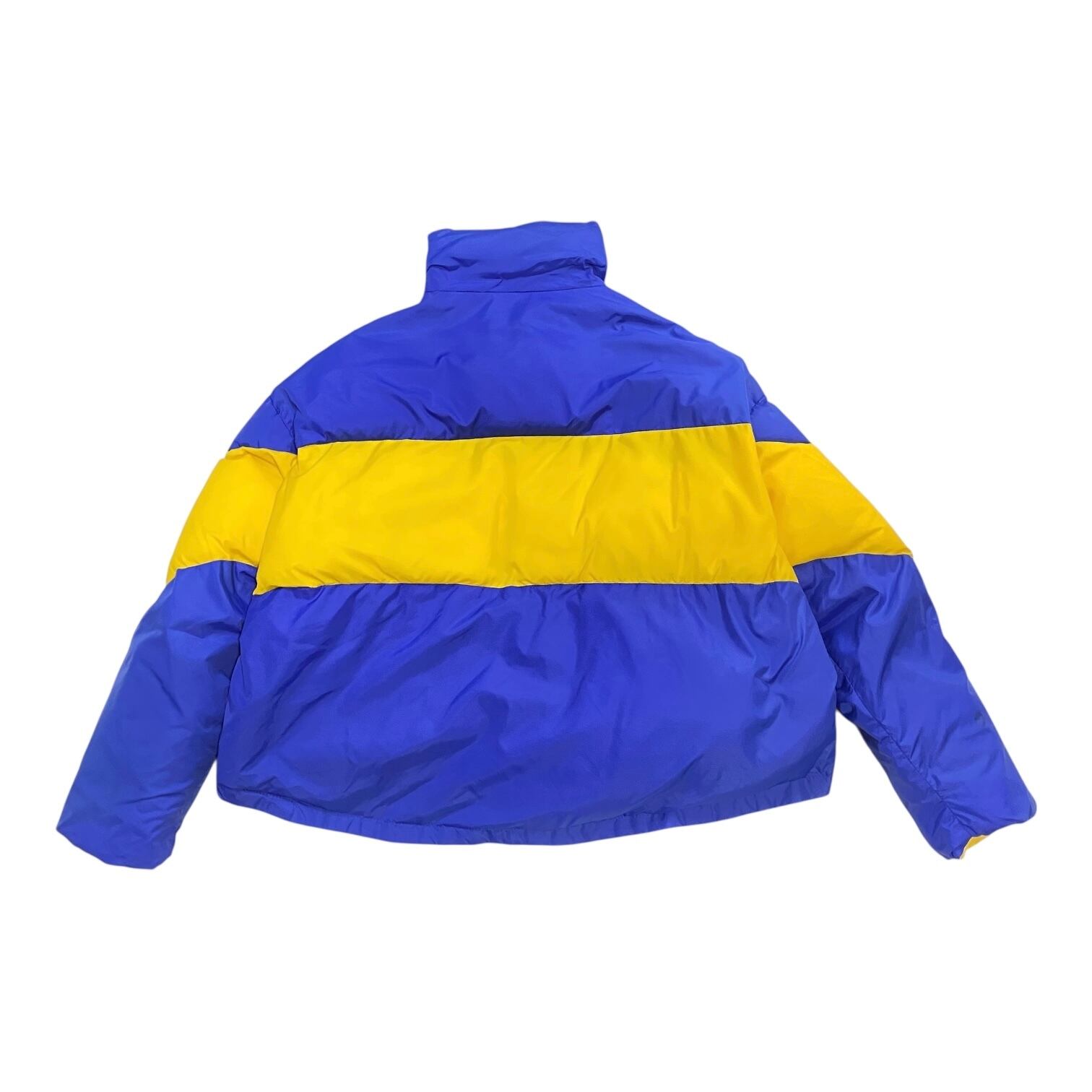 ブルー イエロー ツートーン ショート丈ダウンジャケット