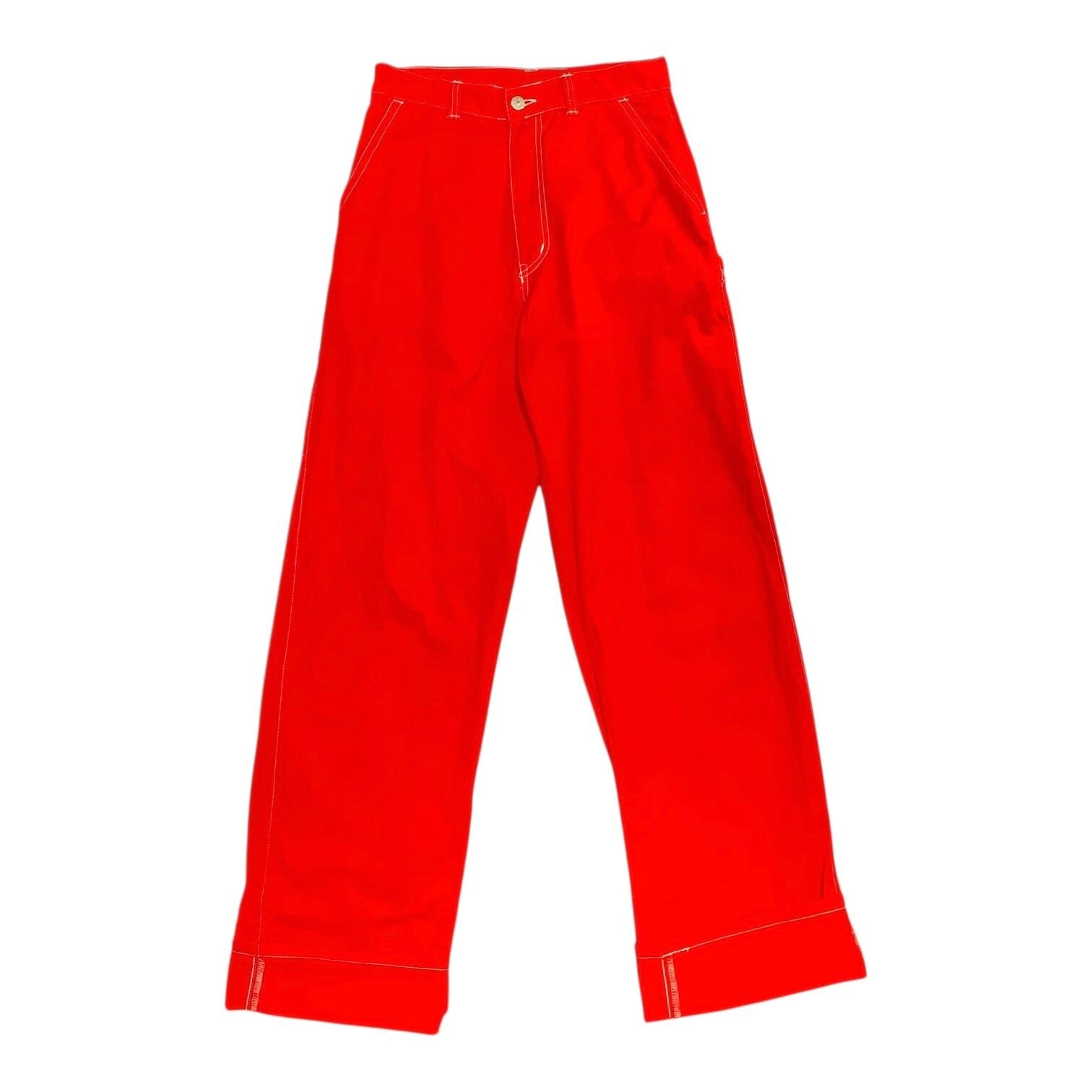レッド ホワイトステッチ ロングパンツ