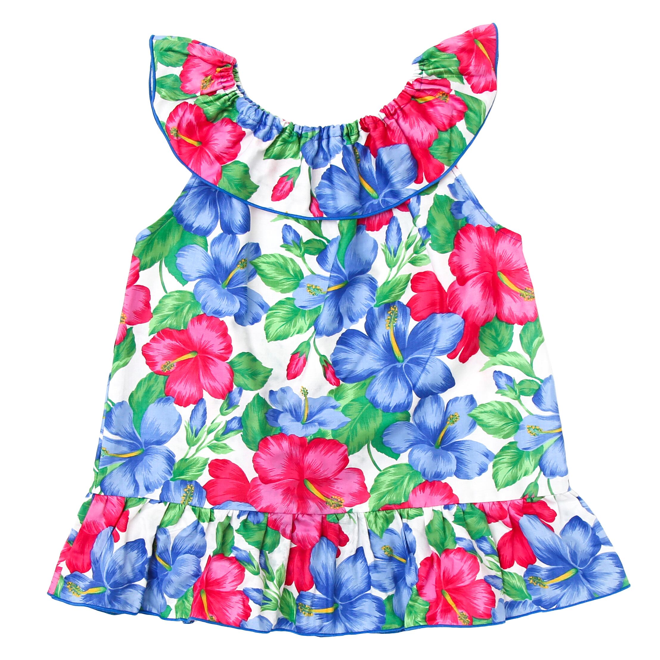 夏にぴったりのトロピカルなお花と大ぶりのフリルが可愛いキッズドレス♡