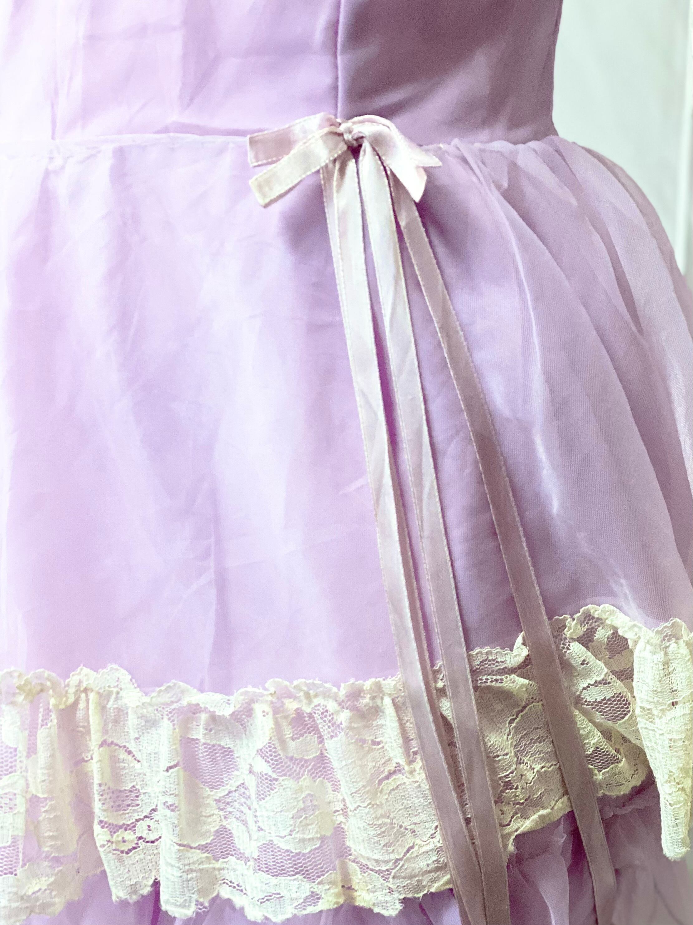 パープル パフスリーブ ヴィンテージドレス